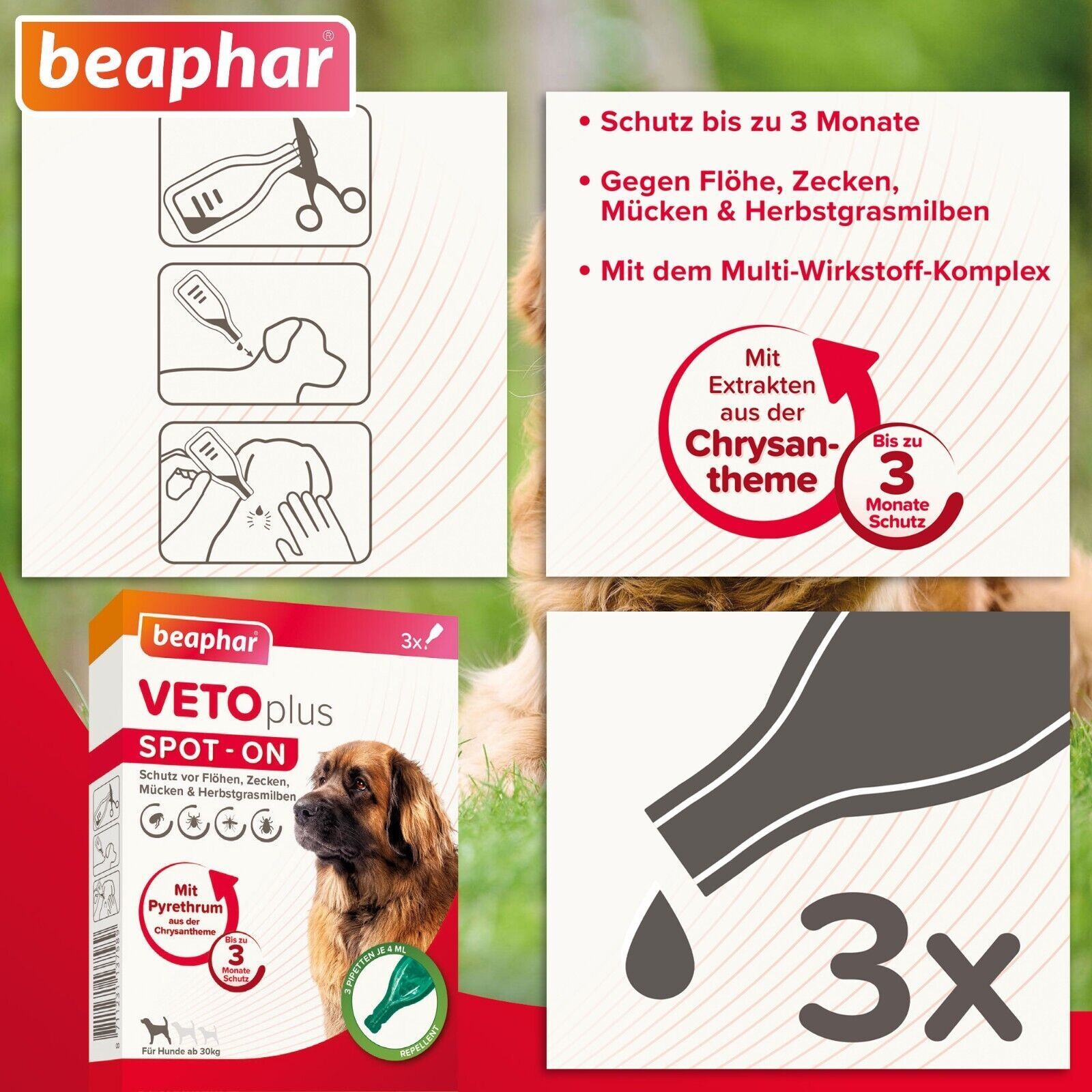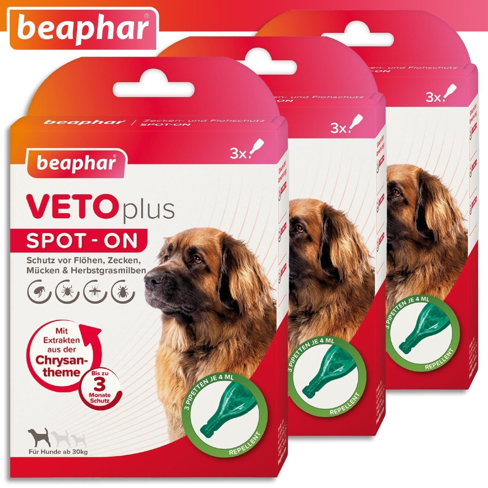Beaphar Beaphar 3 Pack à 3 x 4 ml VETOplus SPOT-ON Ungezieferschutz für Hunde ab 30 kg