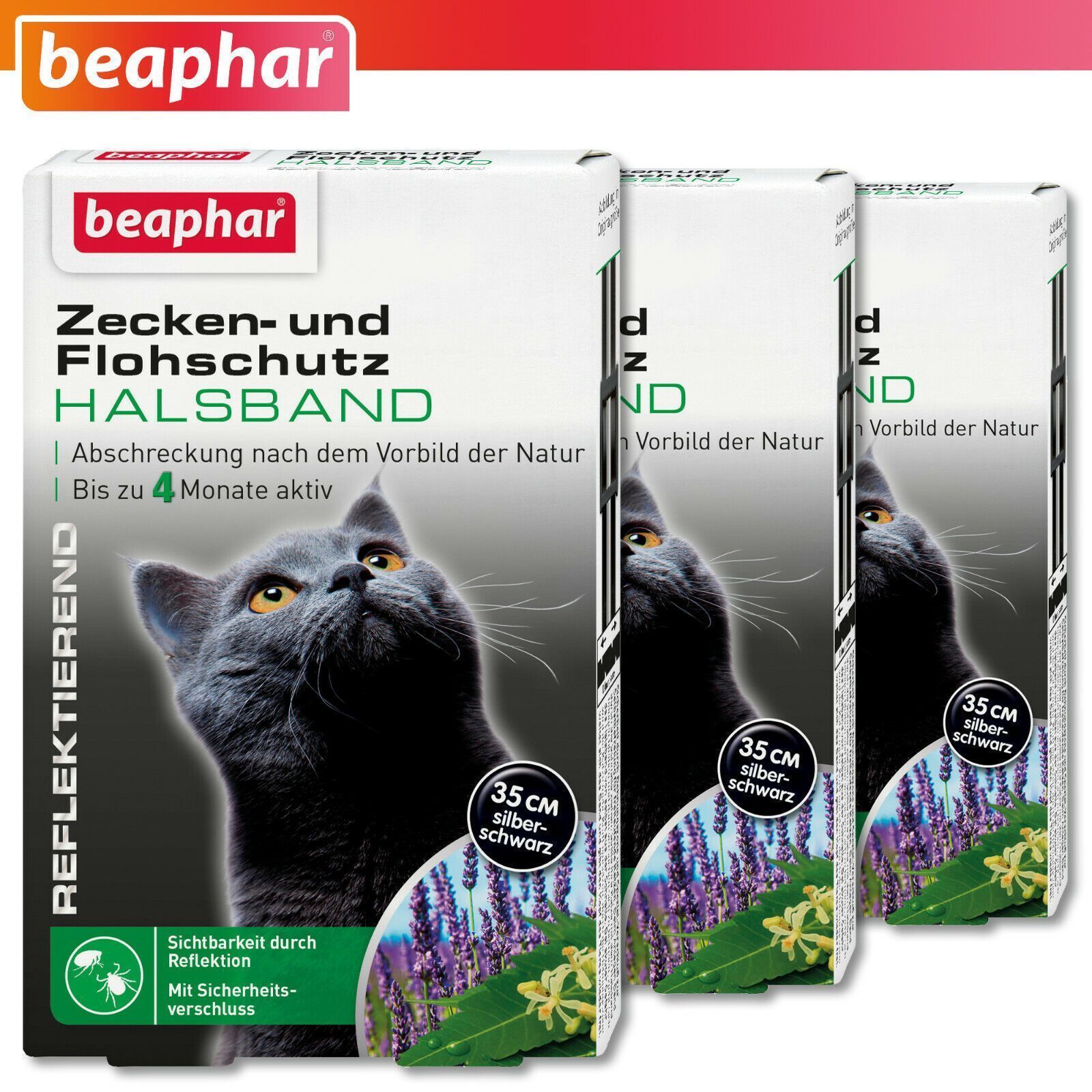Beaphar Beaphar 3 x Zecken- und Flohschutz Halsband für Katzen | reflektierend | 35 cm