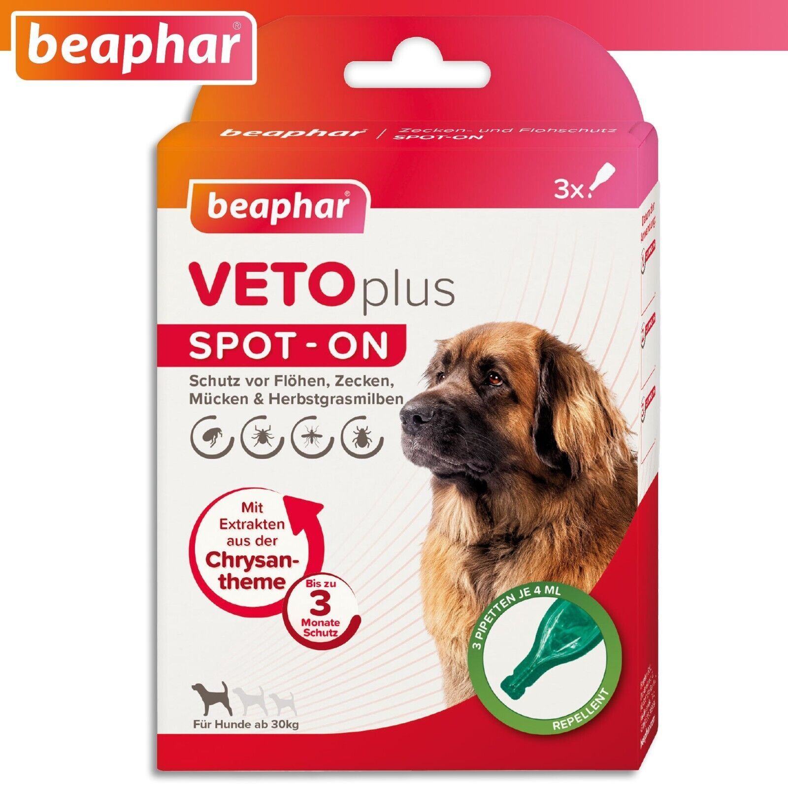 Beaphar Beaphar 3x4 ml VETOplus SPOT-ON Ungezieferschutz für Hunde ab 30 kg Flöhe Zecke