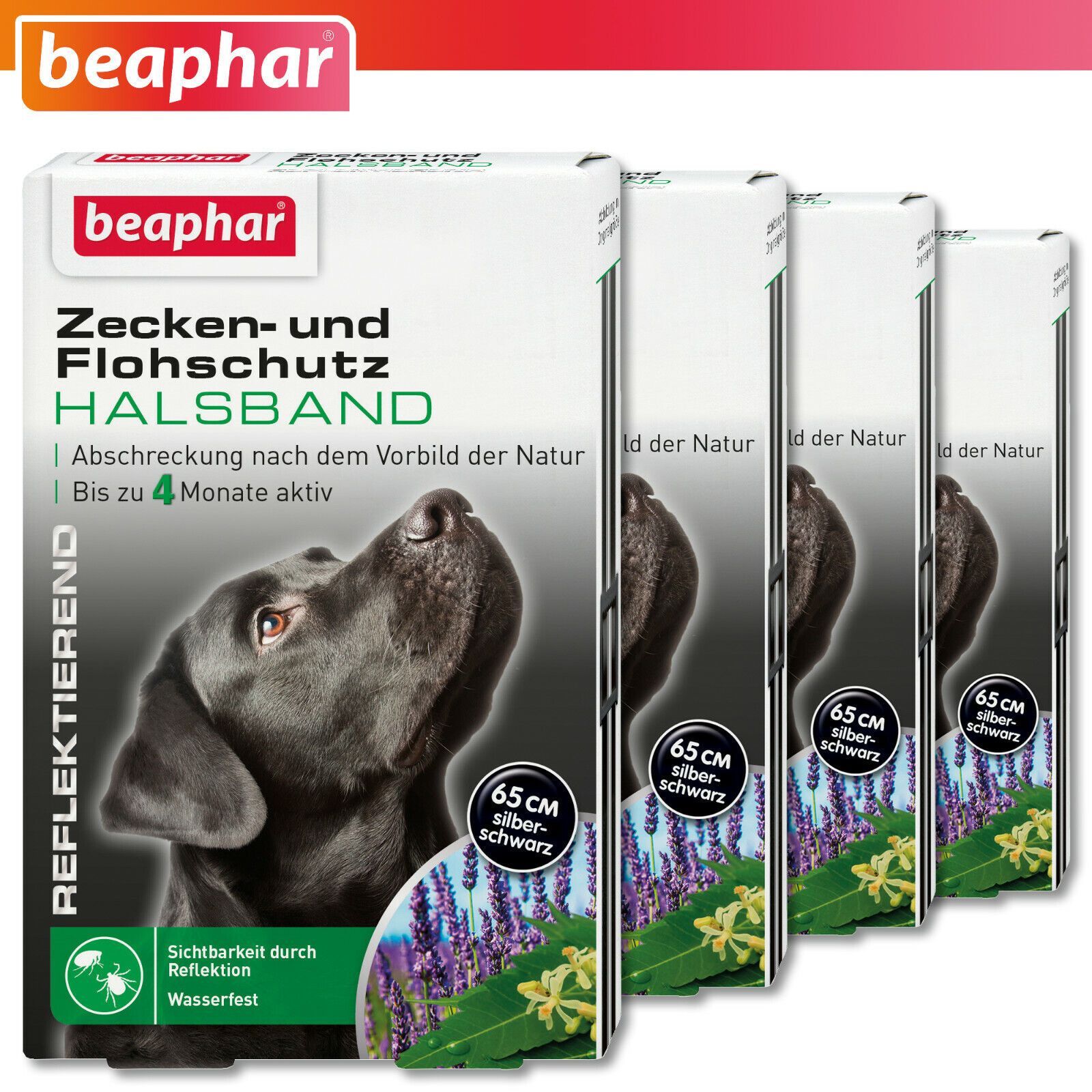 Beaphar Beaphar 4 x Zecken- und Flohschutz Halsband 65 cm für Hunde | reflektierend