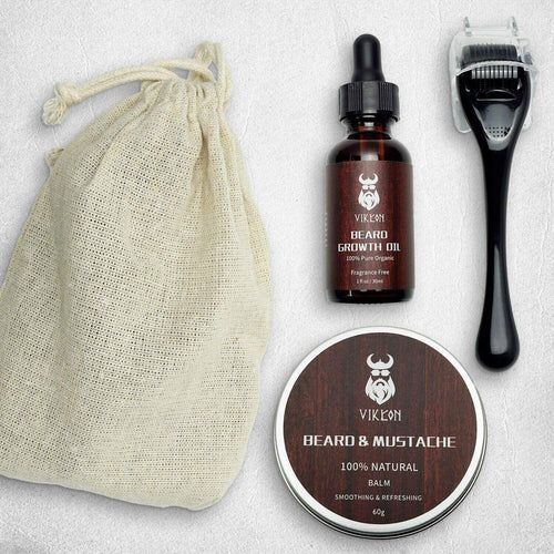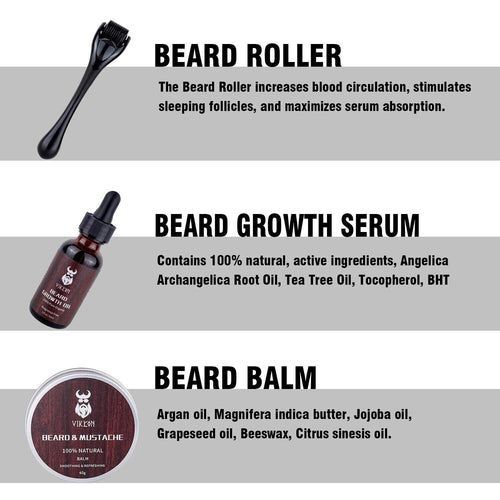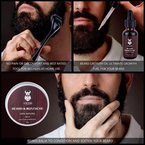 Beard Growth Kit, VIKICON Bartpflege Set, Bartwachstum Kit Für Männer, Bart Derm