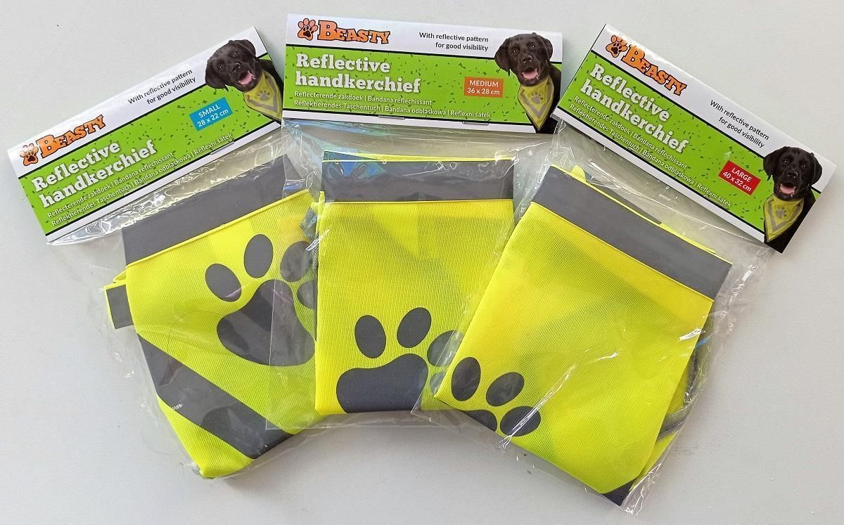 Beasty Refelktierendes Hundehalstuch - LARGE - 40x32cm - gelb / silber