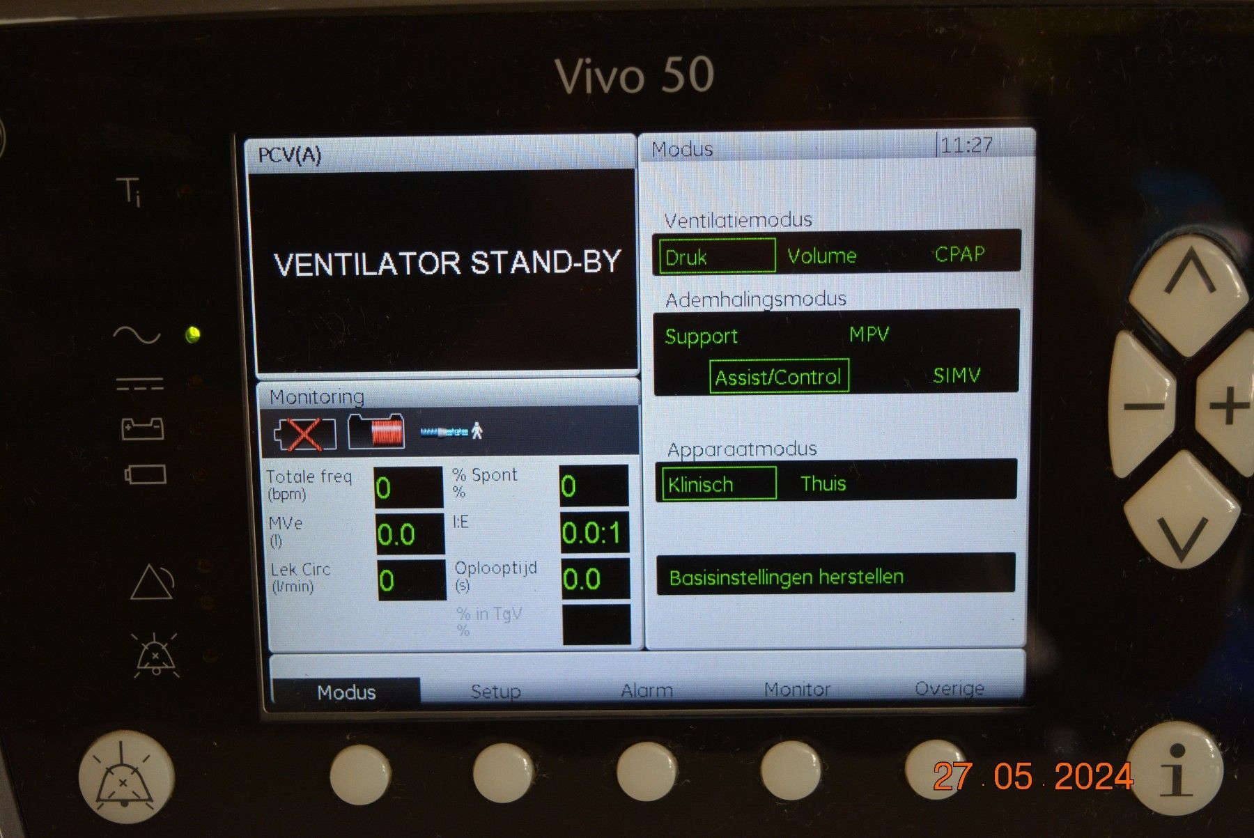Beatmungsgerät Vivo 50 by Breas 12808 Betriebsstunden (NL) DK gebraucht voll funktionsfähig gereinigt und desinfiziert ohne Netzkabel o. Netzteil ist im Originalzustand, CE geprüft Menüsprache in Niederländisch da man die Sprache nicht ändern kann wird es als DEFEKT ERSATZTEIL verkauft geliefert wie