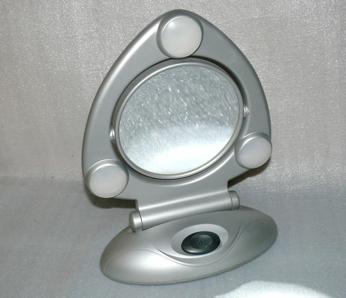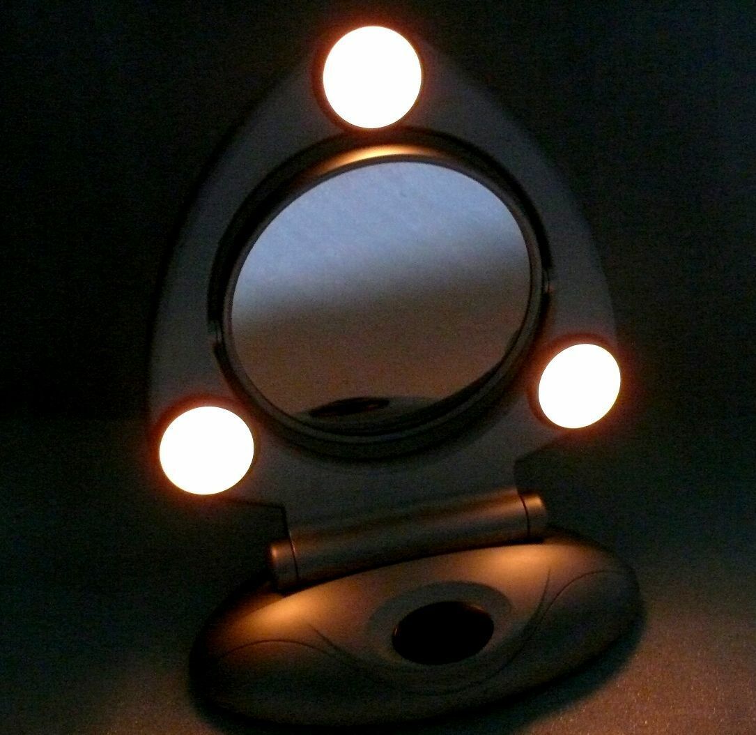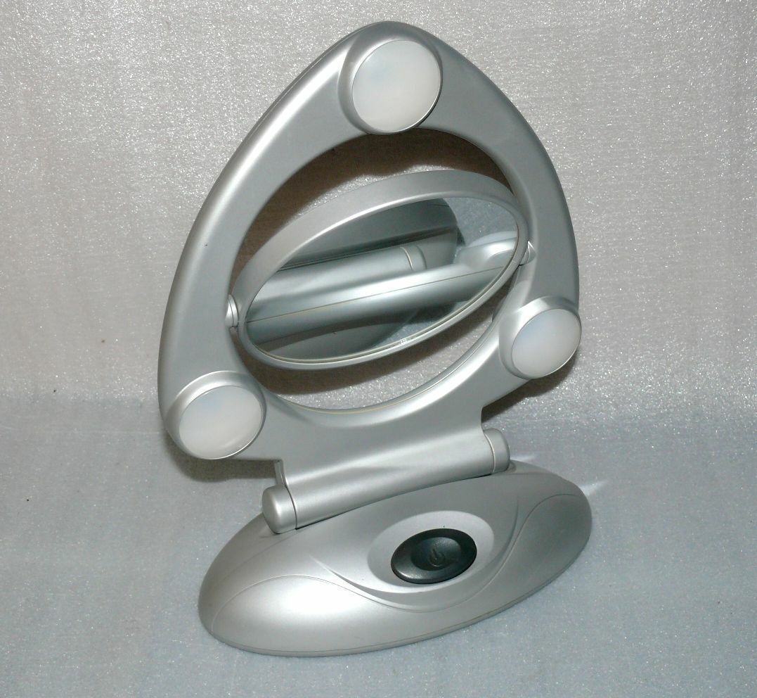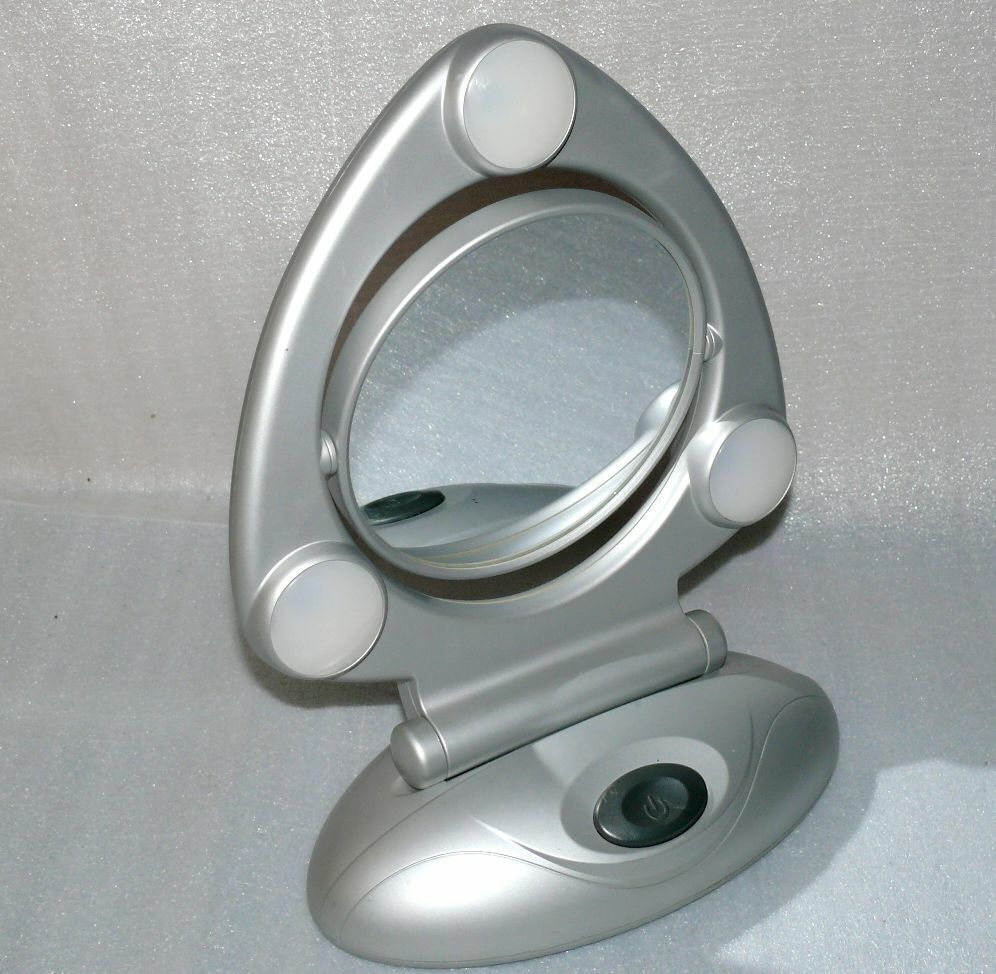 Beauty Schmink Kosmetik Rasieren spiegel 3x 9V Licht 5-fache Vergrößerung Silber