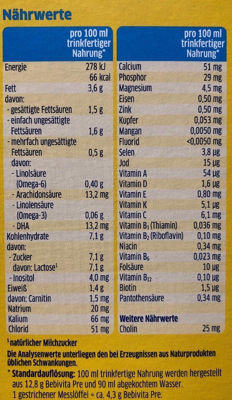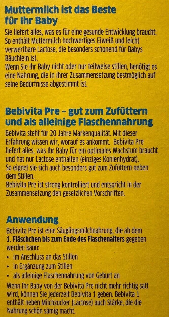 Bebivita Bebivita PRE Anfangsmilch, 4er Pack (4 x 500g)