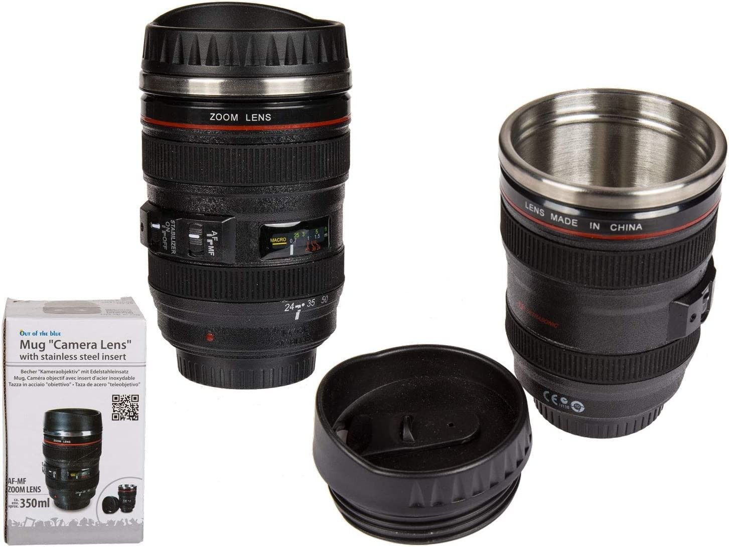 Out of the Blue Becher Kameraobjektiv mit Edelstahleinsatz Kaffee Becher Tasse Geschenk Idee