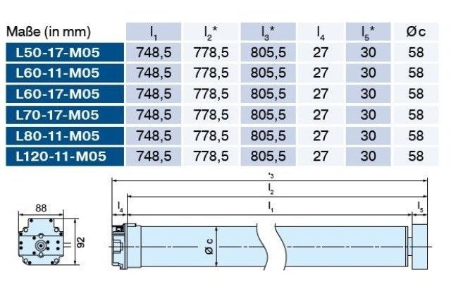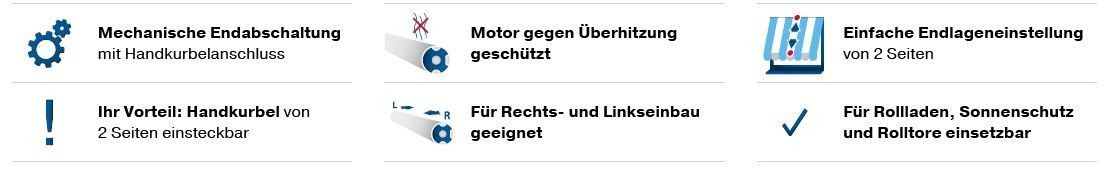 Becker - Rohrantrieb mit Handkurbelanschluss L50-17-M05, 50Nm 17U/ min