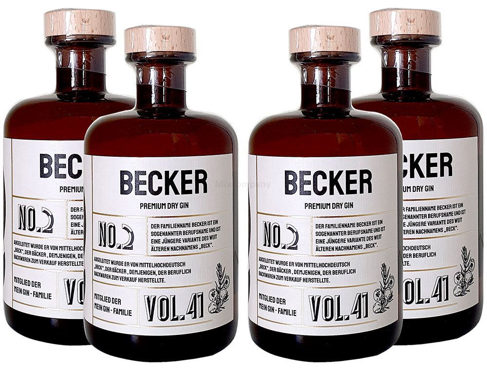 Becker s Premium Dry Gin No2 - 4er Set Der Becker Gin 0,5L (41% Vol)- [Enthält