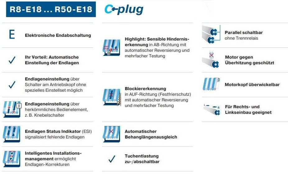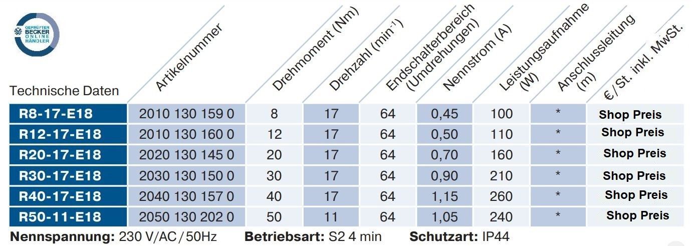 Becker - Sonnenschutzantrieb - ZIP - R50-11-E18, 50Nm 11U/ min Serie R-Typ E18 C-Plug