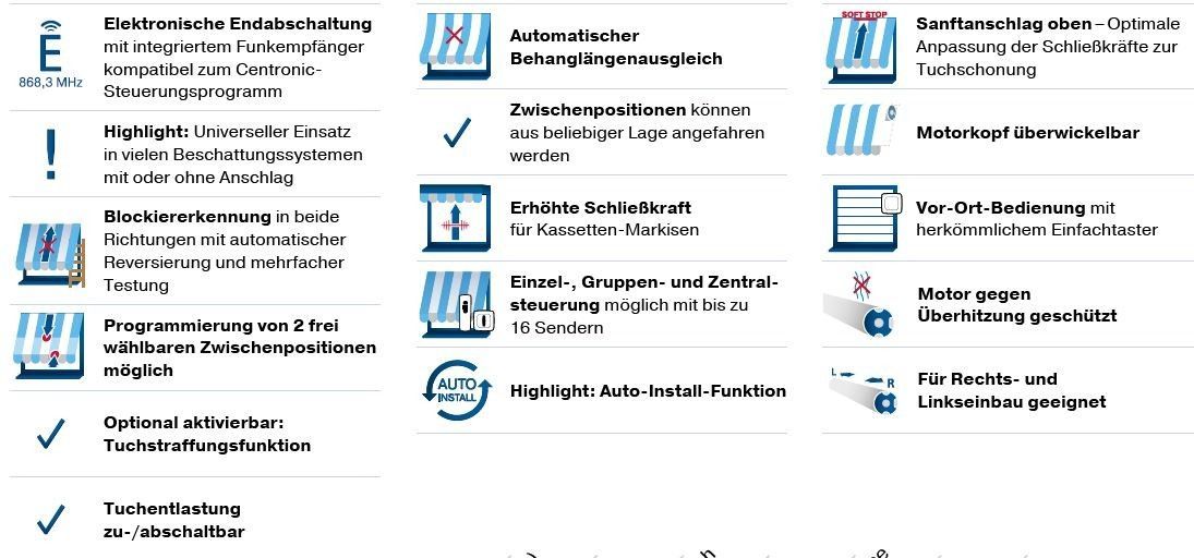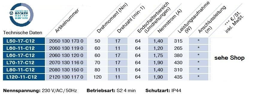 Becker Universal-Markisenantriebe mit Funk L50-17-C12, 50Nm 17U/ min Serie L Typ C12