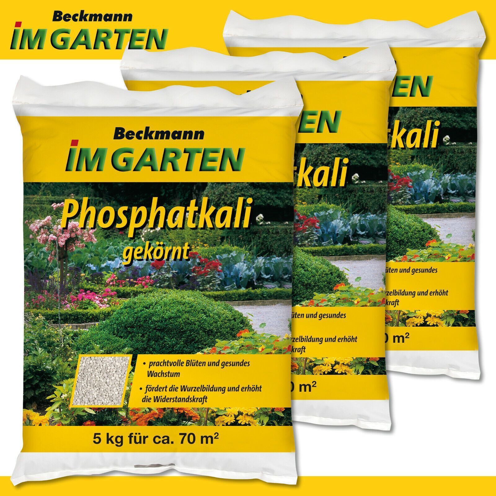 Beckmann 3 x 5 kg Phosphatkali gekörnt Blütenbildung Wurzelbildung Grunddüngung