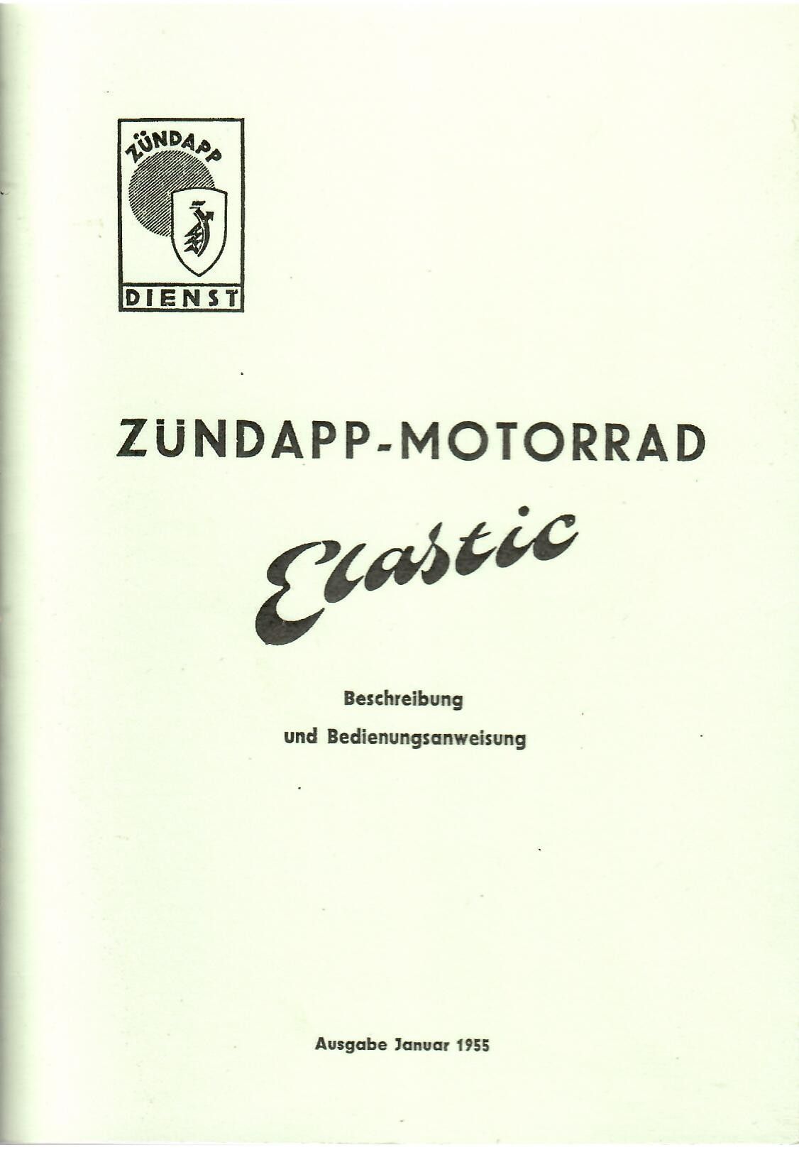 Bedienung und Beschreibung Zündapp Motorrad Elastic Elastic 200 Bedienung, Kundendienst, Wartung, Pflege, technische Daten Ausgabe Januar 1955 ca 50 Seiten A 5 Nachdruck