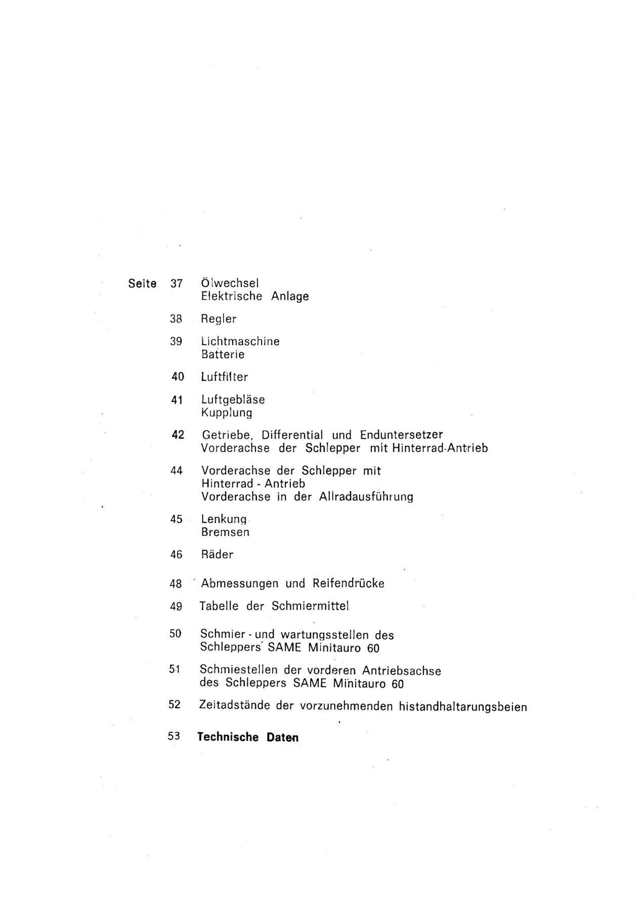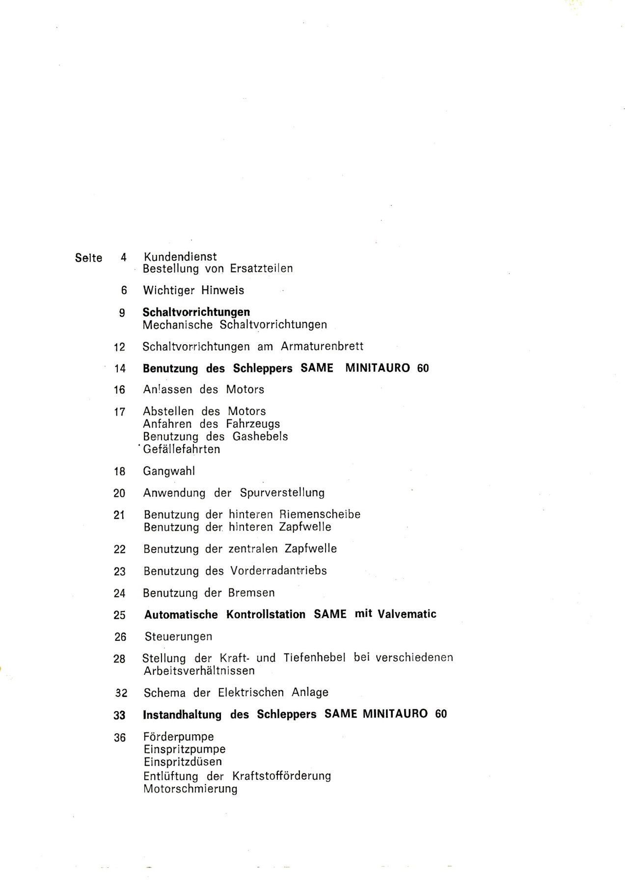 Bedienung und Wartung für den Same Minitauro 60