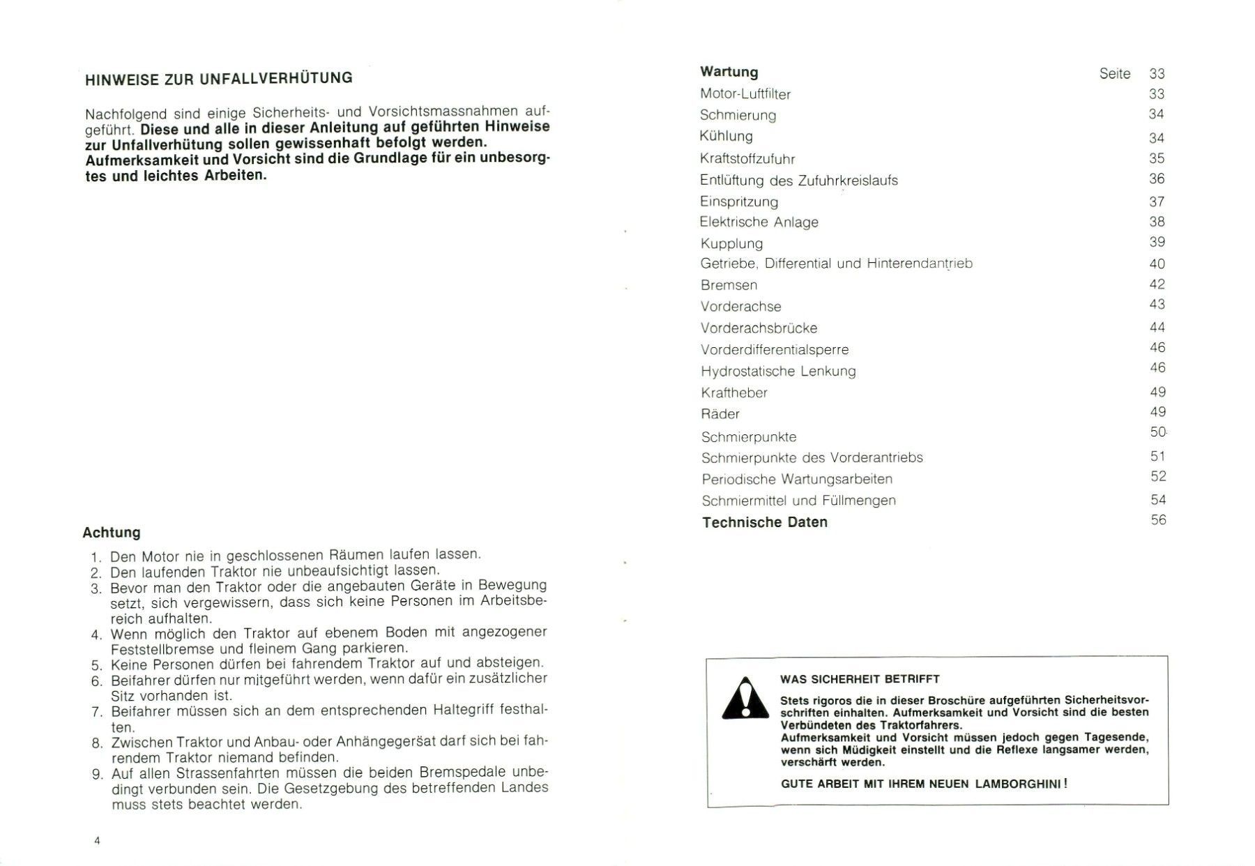 Bedienung und Wartung für den Traktoren Lamborghini 674-70N und 774-80N