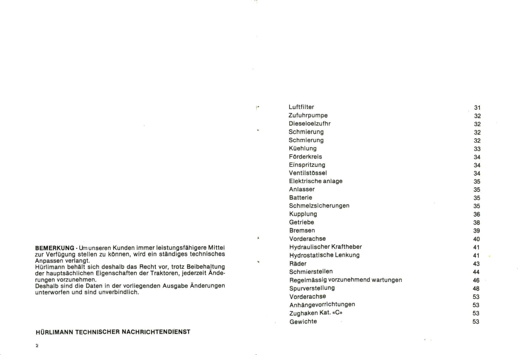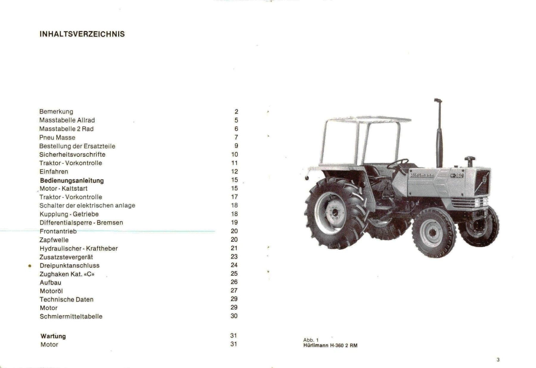 Bedienung und Wartung ür den Traktor Hürlimann H - 360