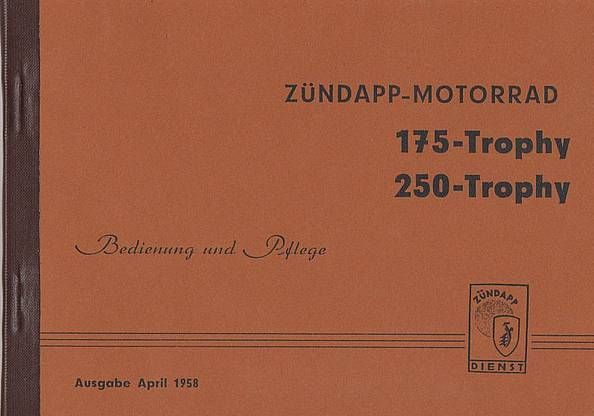 Bedienung & Pflege Zündapp 175-Trophy 250 Trophy Ausgabe April 1958 ca 80 Seiten A 6 Nachdruck