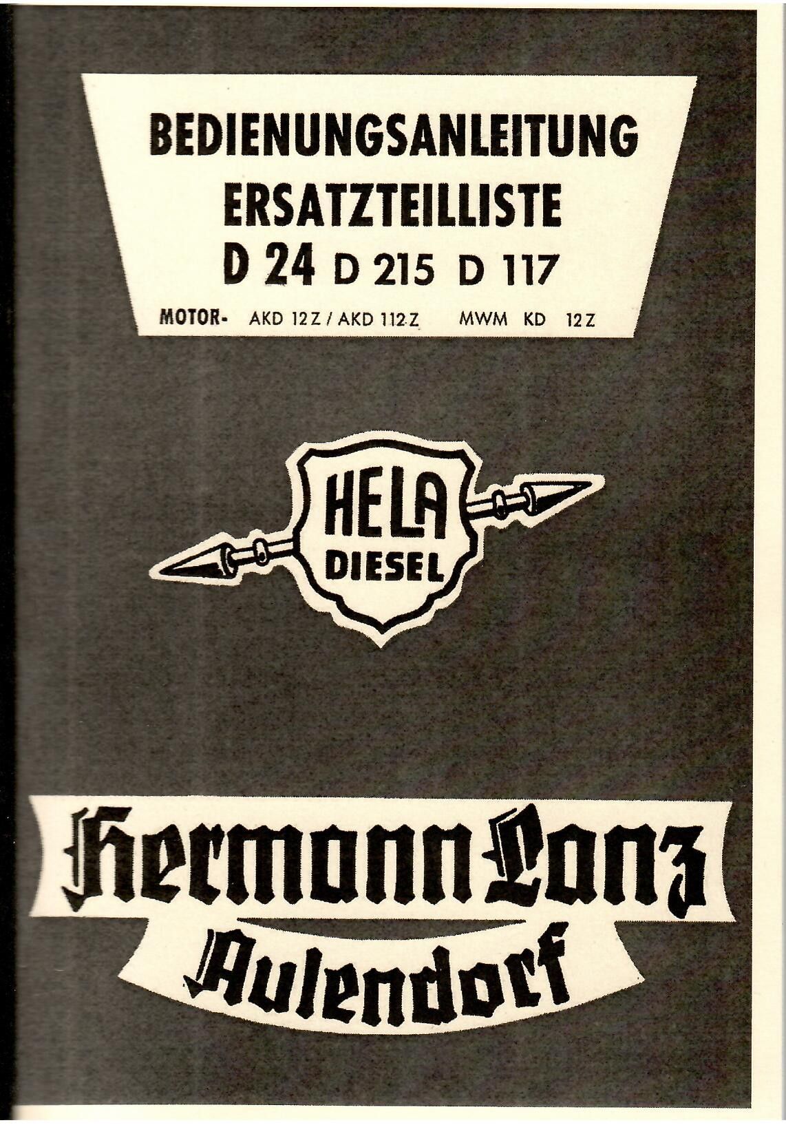 Bedienungs und Ersatzteilliste Hela ( Hermann Lanz) D 24, D 215, D 117