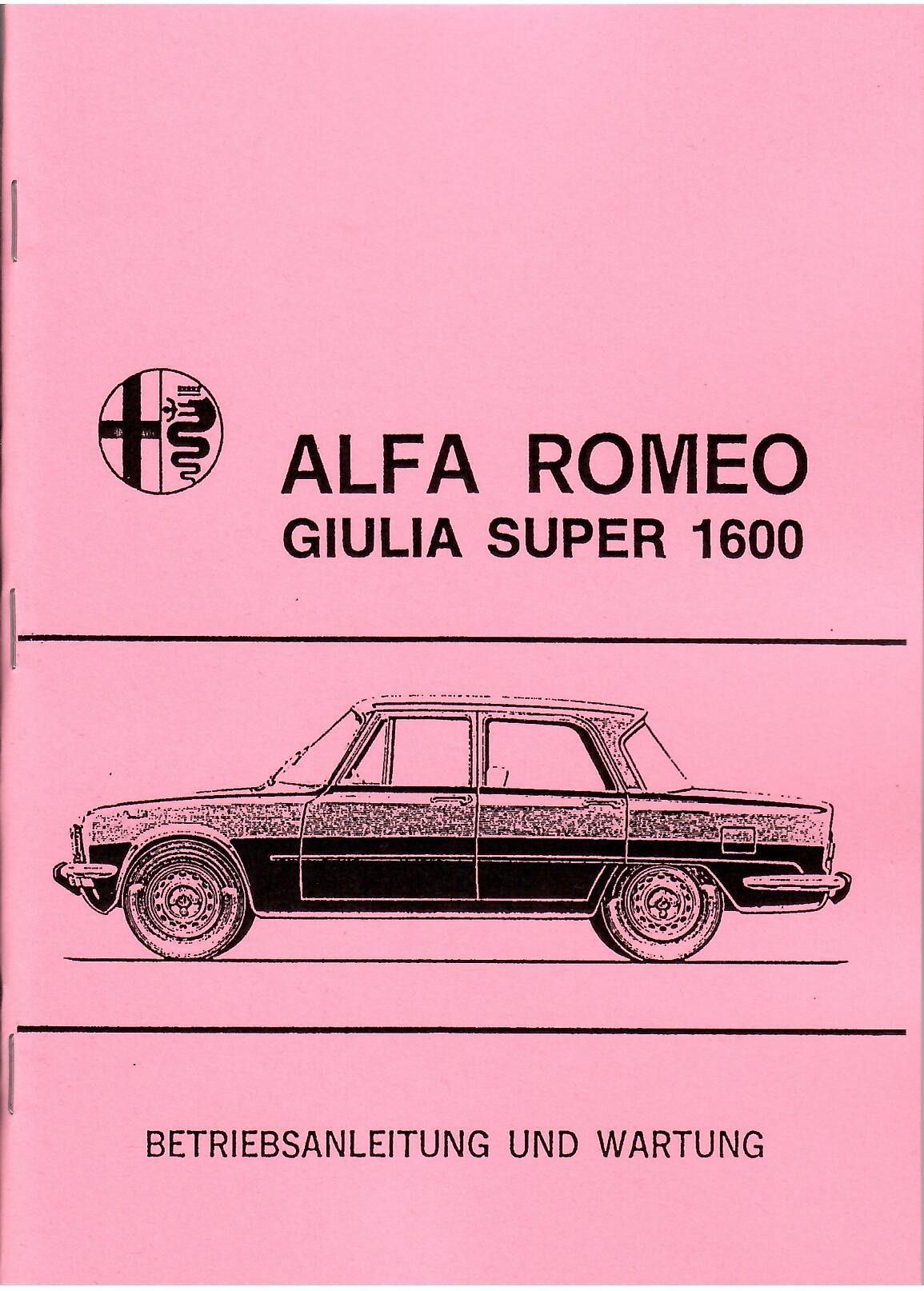 Bedienungsanleitung Alfa Romeo Giulia Super 1600, PKW, Auto, Oldtimer, Klassiker