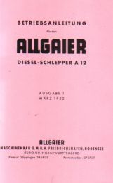 Bedienungsanleitung Allgaier Dieselschlepper A 12 Ausgabe 1 , März 1952 ca 38 Seiten A 5 Nachdruck