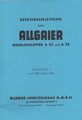 Bedienungsanleitung Allgaier Dieselschlepper A 22, A 24, Dieselschlepper, Trecker