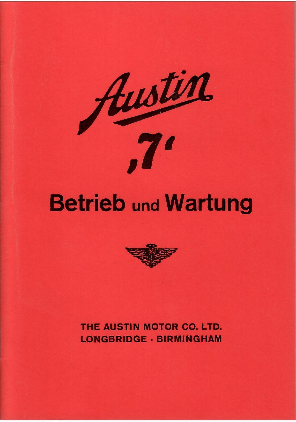 Bedienungsanleitung Austin Seven Auto, Oldtimer Klassiker