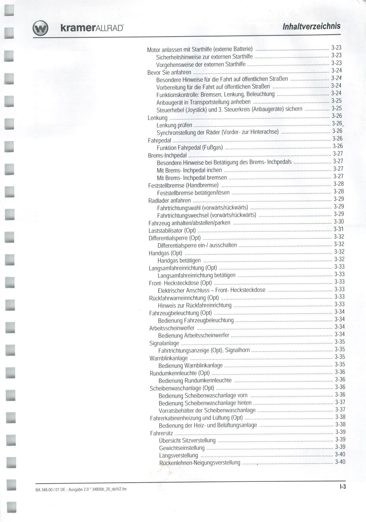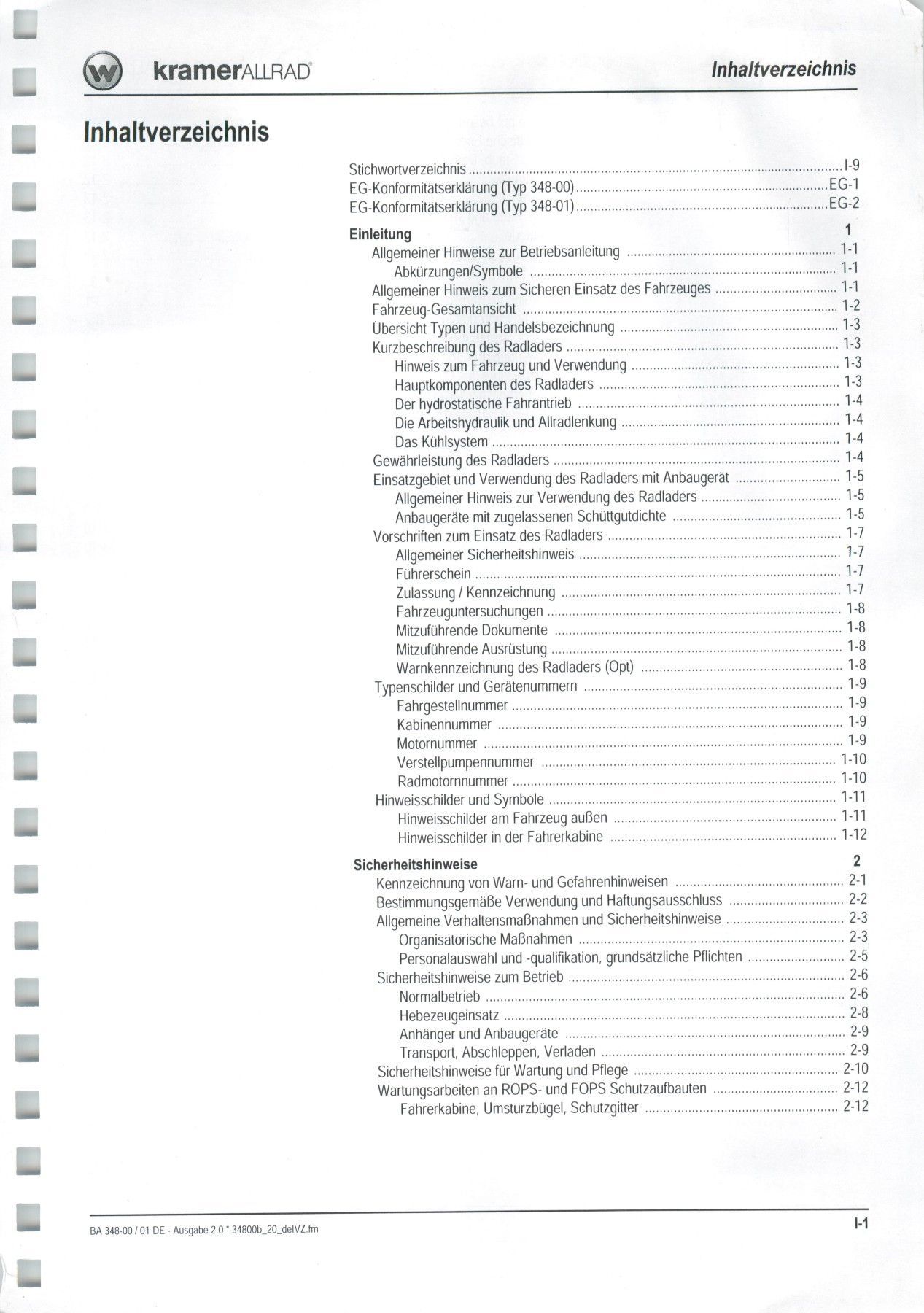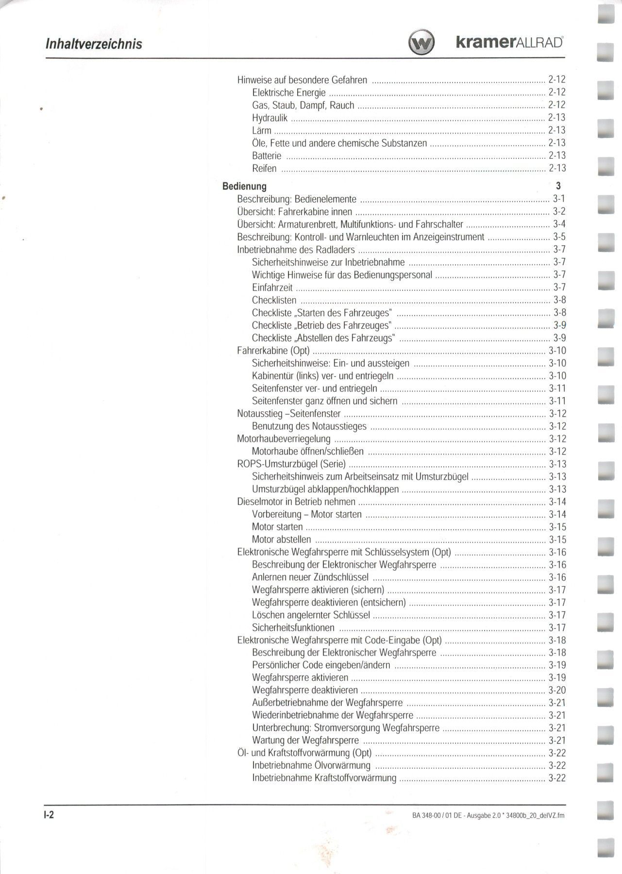Kramer Bedienungsanleitung Bedienungsanweisung Kramer Allrad Radlader 250/350
