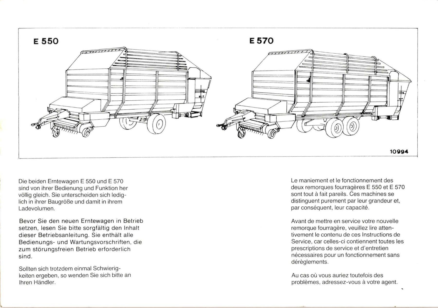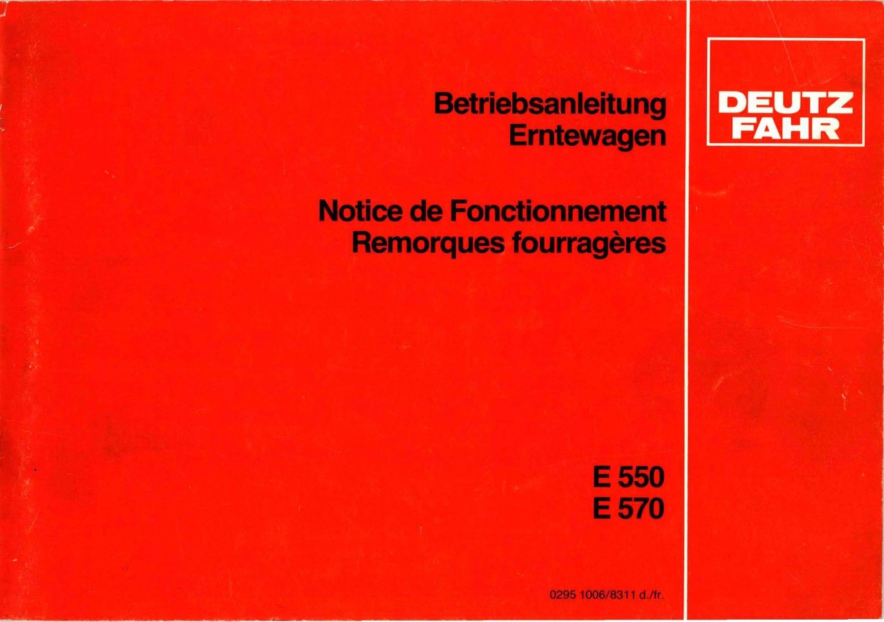 Bedienungsanleitung Betriebsanleitung Deutz Fahr Erntewagen E550 und E570