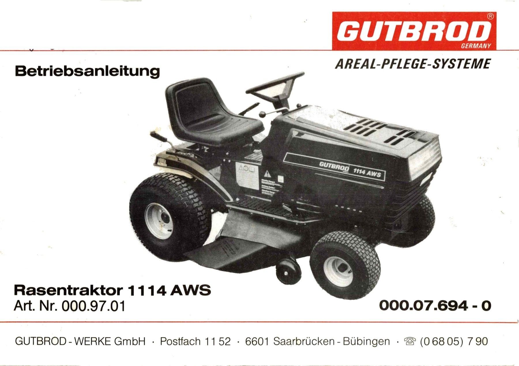 Bedienungsanleitung Betriesanleitung Gutbrod 1114 AWS Rasentraktor