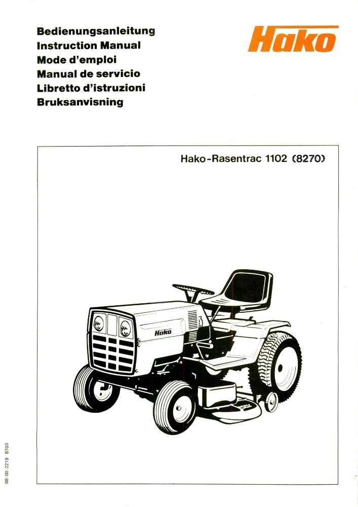 Bedienungsanleitung Betriesanleitung HAKO-Rasentrac 1102 (8270)