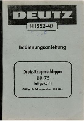 • Bedienungsanleitung Deutz Raupenschlepper DK 75 Luftgekühlt, Landtechnik