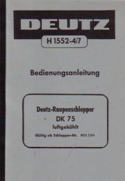 Bedienungsanleitung Deutz Raupenschlepper DK 75 luftgekühlter Deutz Dieselmotor F4L 514 gültig ab Schleppernummer 8031 204 incl. 4 . Vierfarb Seiten ca 126 Seiten A 5 Nachdruck