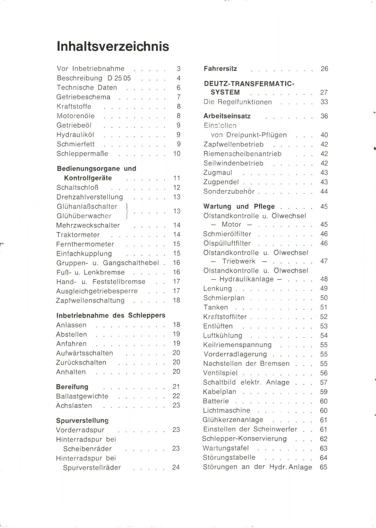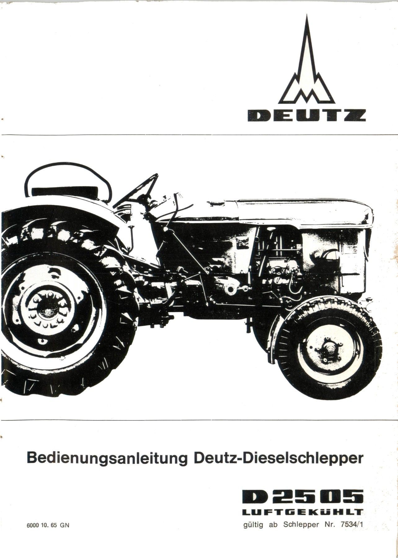 Bedienungsanleitung Deutz Traktor Schlepper D 2505 Luftgekühlt
