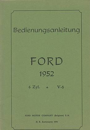 Bedienungsanleitung Ford 6 Zylinder und V 8 Ausgabe 1952 in Deutsch ca 58 Seiten A 5 Nachdruck