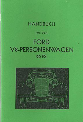 Bedienungsanleitung Ford V 8 Motor 90 PS Ausgabe 5 1939 in Deutsch ca 52 Seiten A 5 Nachdruck