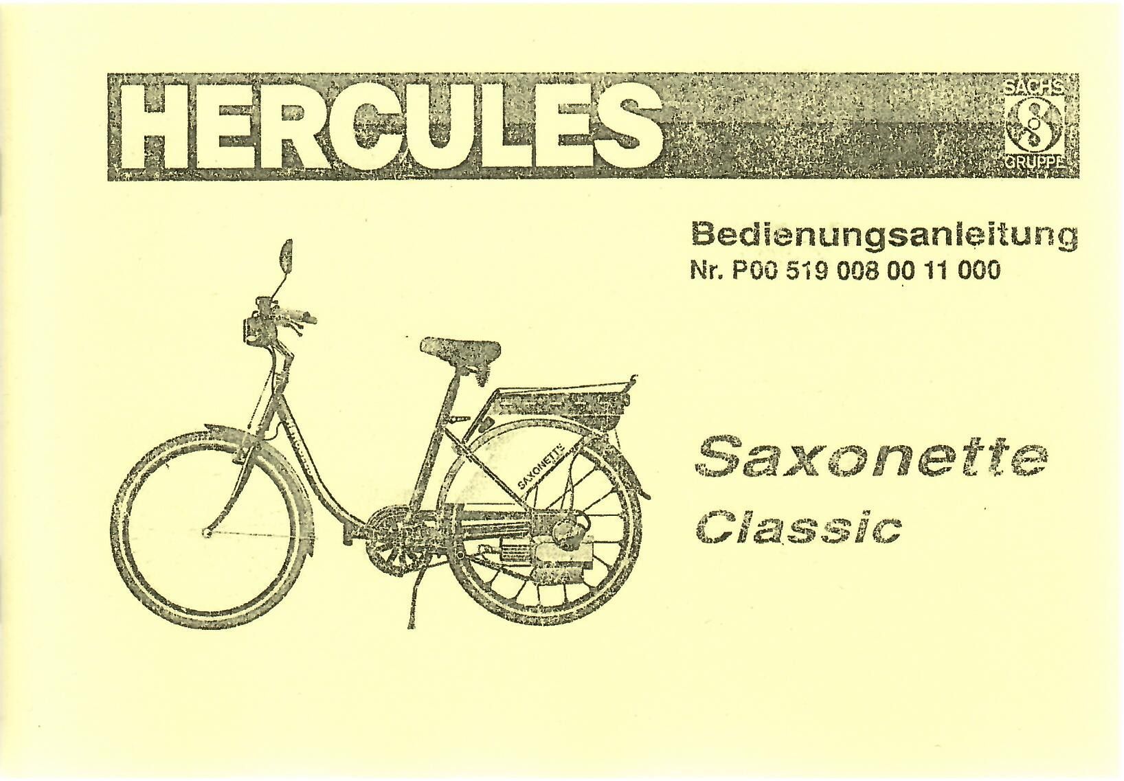 Hercules Bedienungsanleitung Hercules Sachs Saxonette Classic, Motorfahrrad, Oldtimer