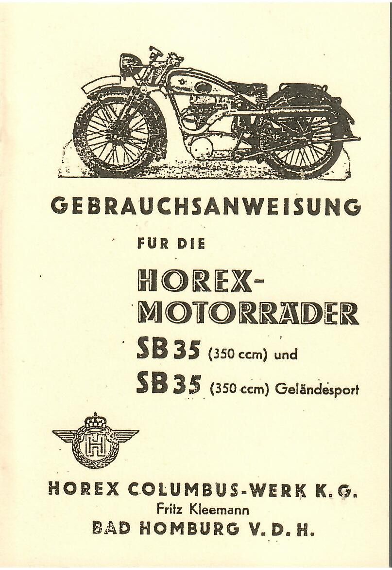 Horex Bedienungsanleitung Horex SB 35 (350ccm ), Gebrauchsanweisung, Handbuch , Oldtimer