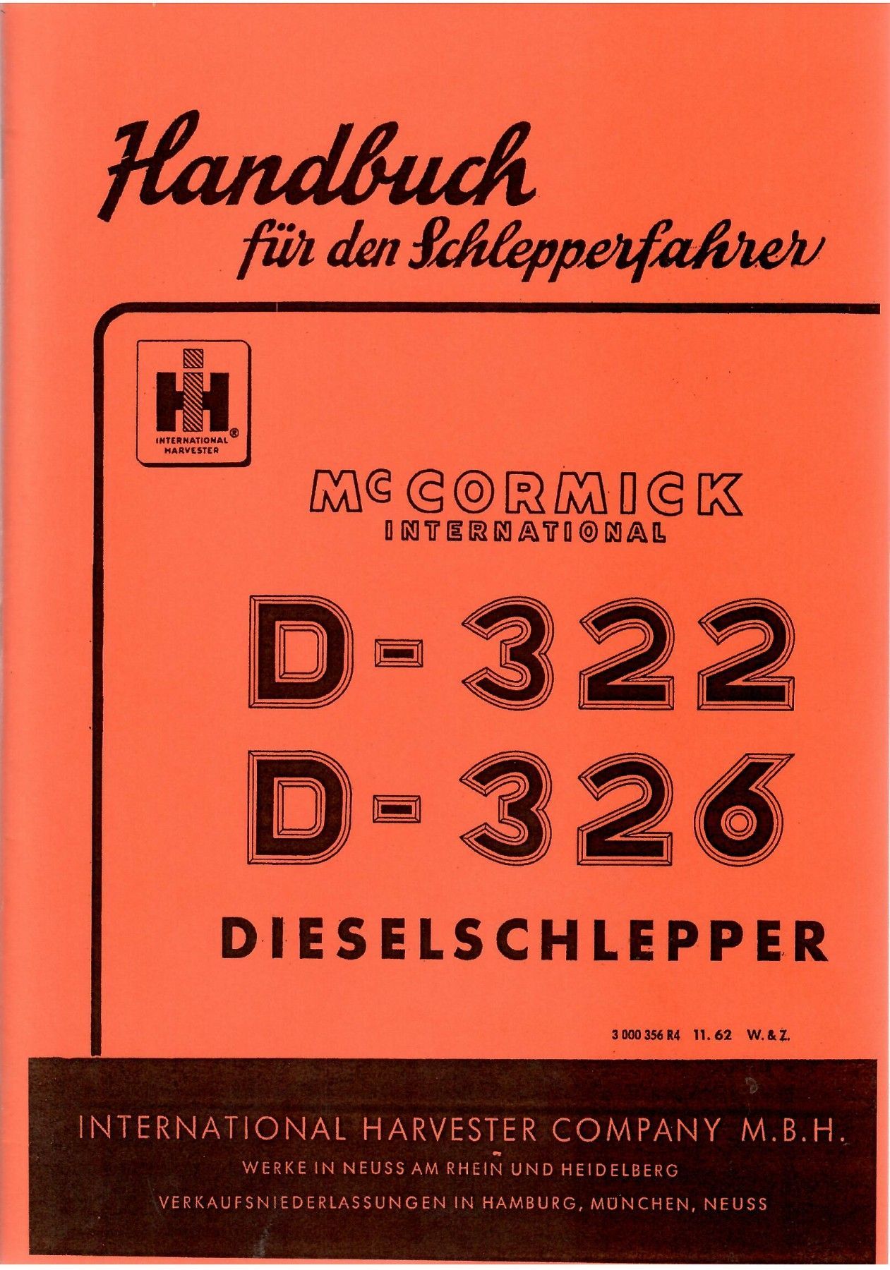 Bedienungsanleitung IHC D-322 D-326, Mc Cormick, International Harvester Company