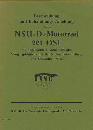 Bedienungsanleitung NSU-D-Motorrad NSU 201 OSL 200 ccm 8,5 PS, Motorrad