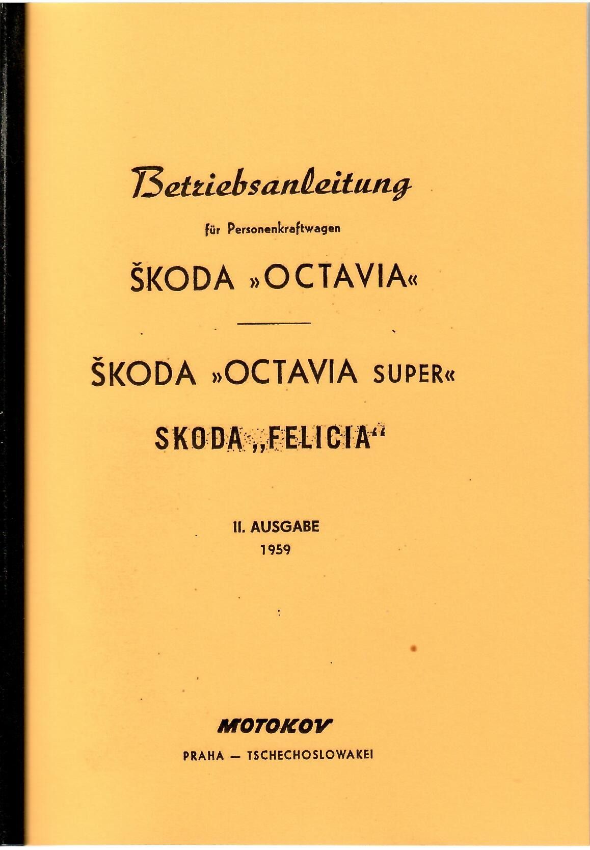 Skoda Bedienungsanleitung Skoda, Octavia, Octavia Super, Felicia, Auto, PKW, Oldtimer