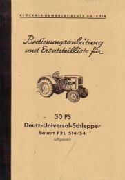 Bedienungsanleitung und Ersatzteilliste 30 PS Deutz Universalschlepper Bauart F2L 514