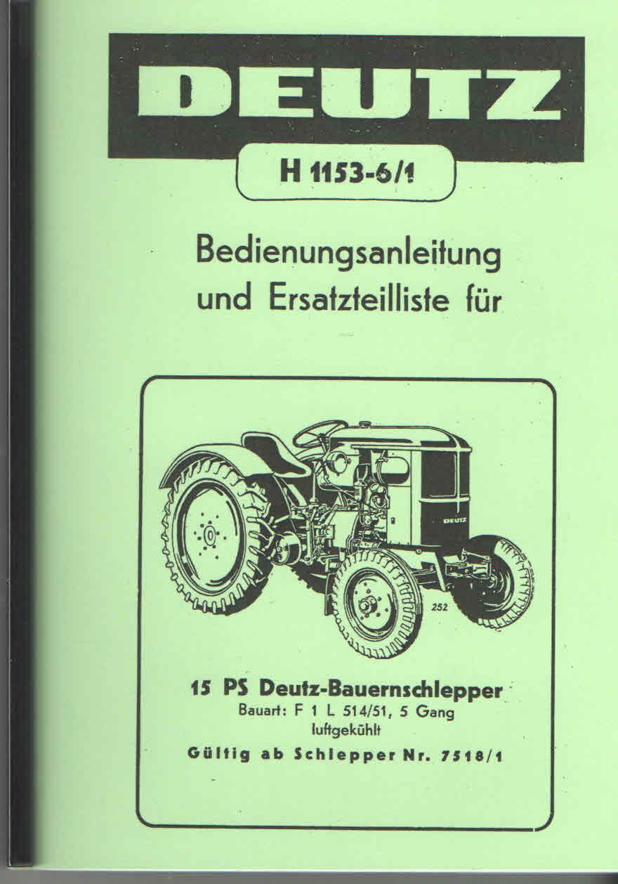 Bedienungsanleitung und Ersatzteilliste Deutz Bauernschlepper