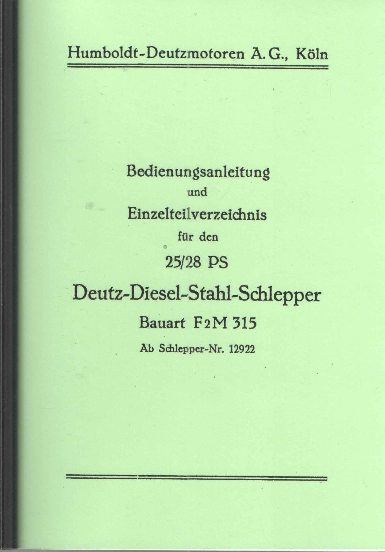 Bedienungsanleitung und Ersatzteilverzeichnis, 25/28 PS Deutz Diesel Stahl Schlepper
