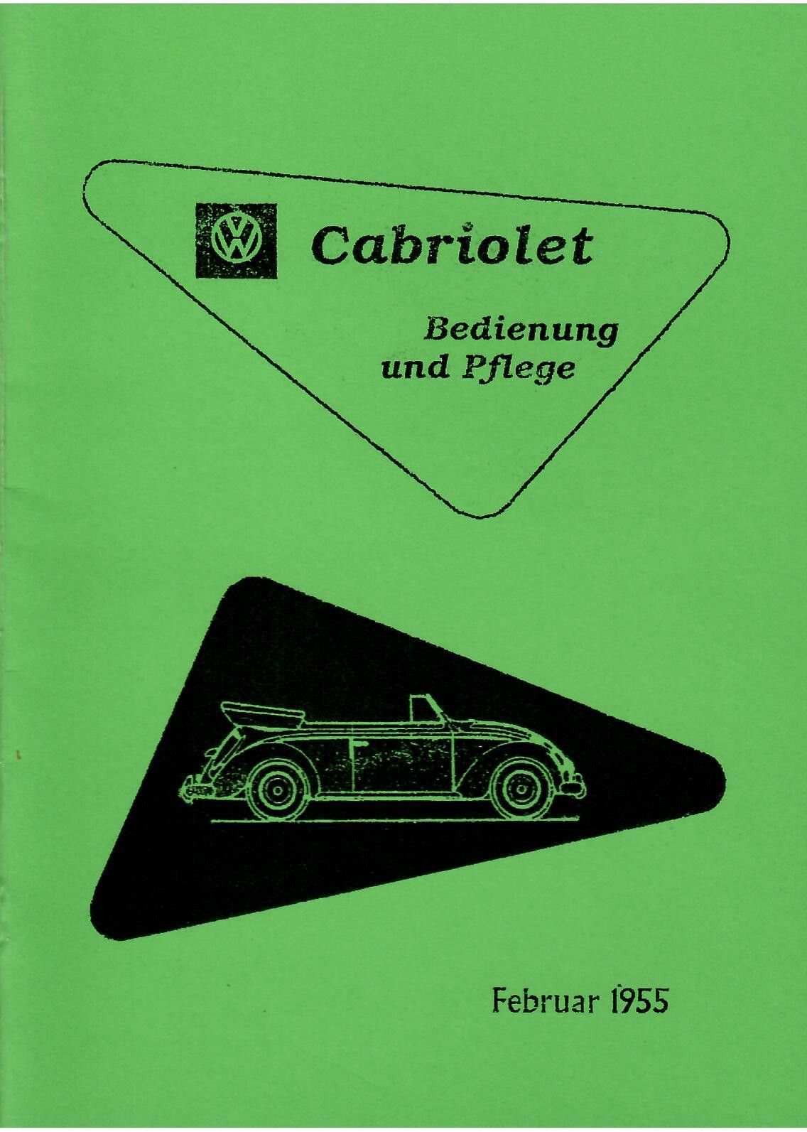 Bedienungsanleitung VW Käfer Cabriolet 1200 ccm 30 PS Zusatzbedienungs und Pflegeanleitung Karmann Karosserie mit Schmirplan Ausgabe 1955 ca 12 Seiten A 5 Nachdruck