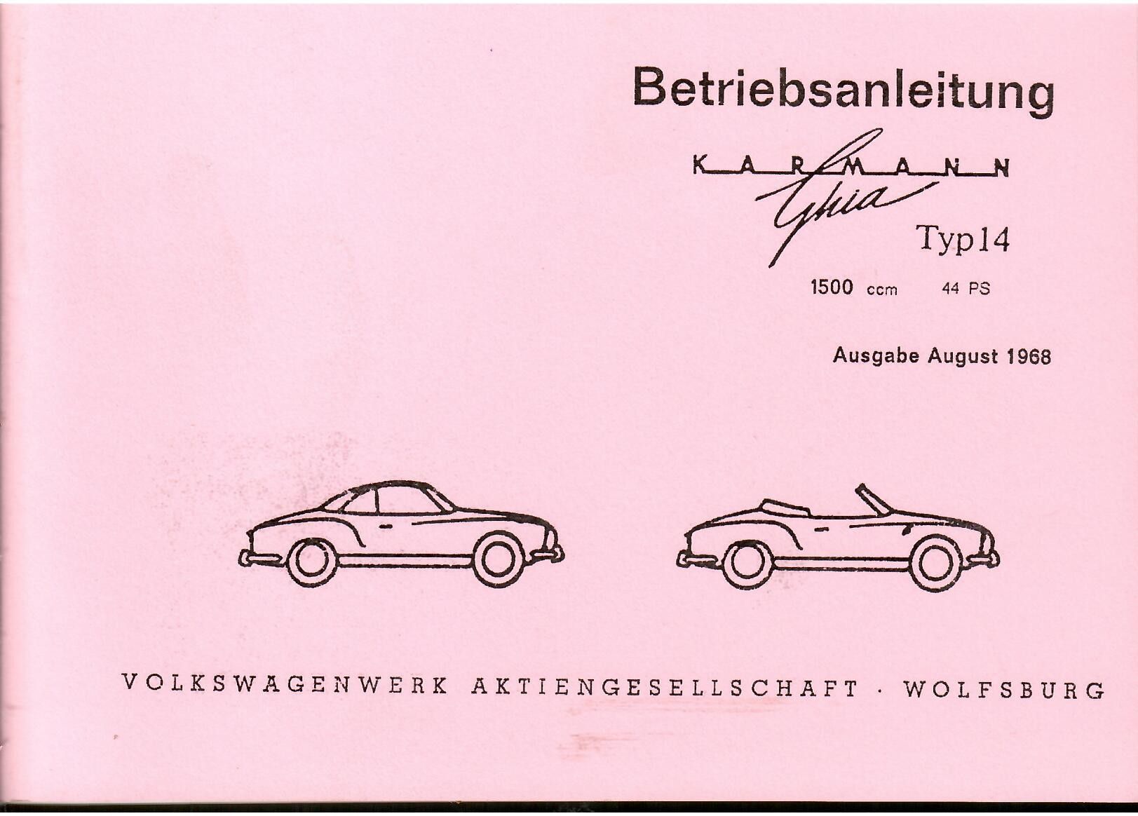 Volkswagen Bedienungsanleitung VW Karmann Ghia Typ 14, 15 00 ccm, 44 PS, Auto, Oldtimer