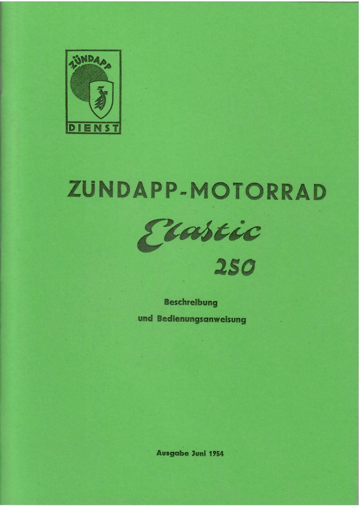 Bedienungsanweisung für Zündapp Elastic 250, Motorrad, Oldtimer, Klassiker