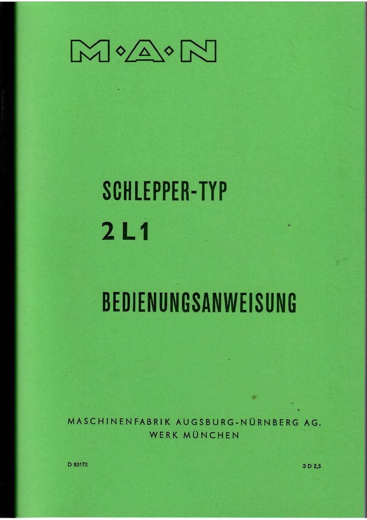 Bedienungsanweisung MAN Schlepper-Typ 2L1, Trecker, Landtechnik, Oldtimer, Traktor