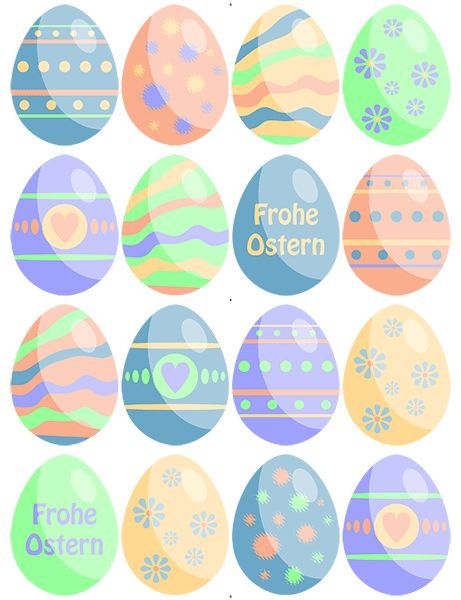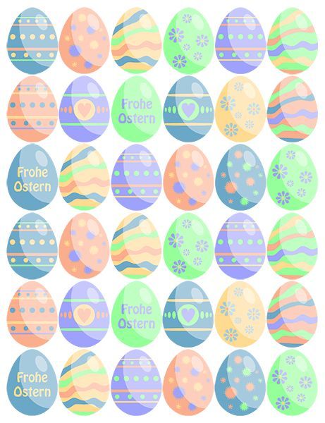 Bedruckte Oblaten Ostereier in Pastellfarben Gestalten Sie Popsicles, Muffins, Cupcakes, Törtchen und viele weitere Leckereien mit diesen tollen bunt bedruckten Osterei Oblaten. Unsere bedruckten Oblatenaufleger können vielseitig eingesetzt werden. Egal, ob zum österlichen Brunch, oder einfach beim