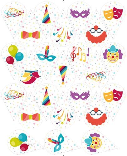 bedruckte Oblaten zum Einstecken 24 Stück - 60x40mm - Motiv Karneval