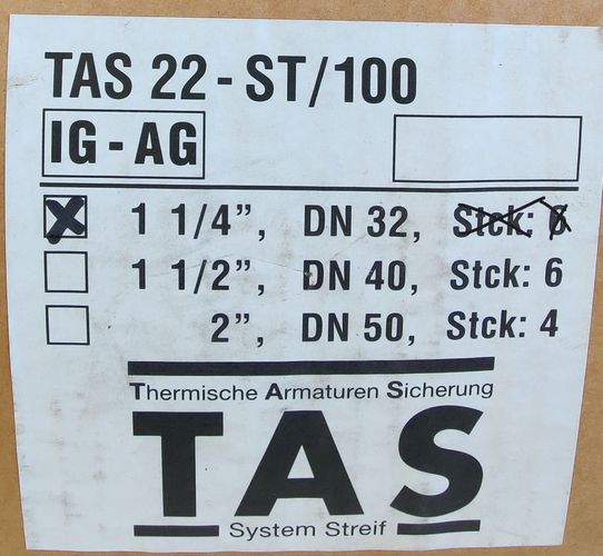 BEE TAS 22-ST/100 IG-AG 11/4" DN32 Thermische Armaturen Sicherung
