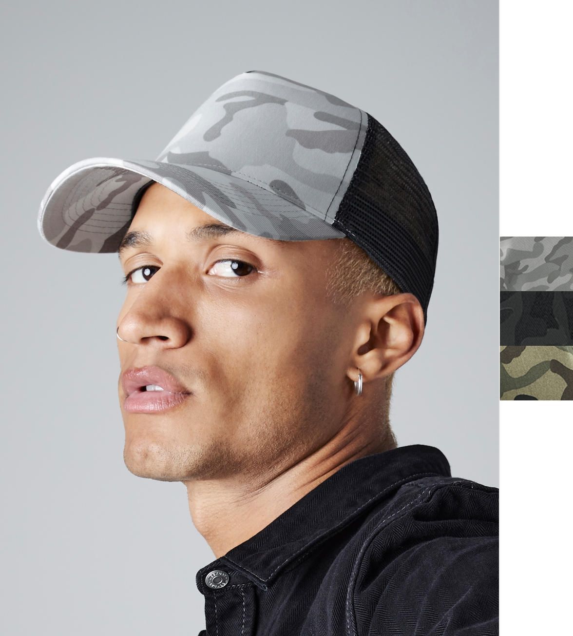 Beechfield Camo Snapback Trucker Cap Baumwolle Camouflage Retro-Look B694 NEU